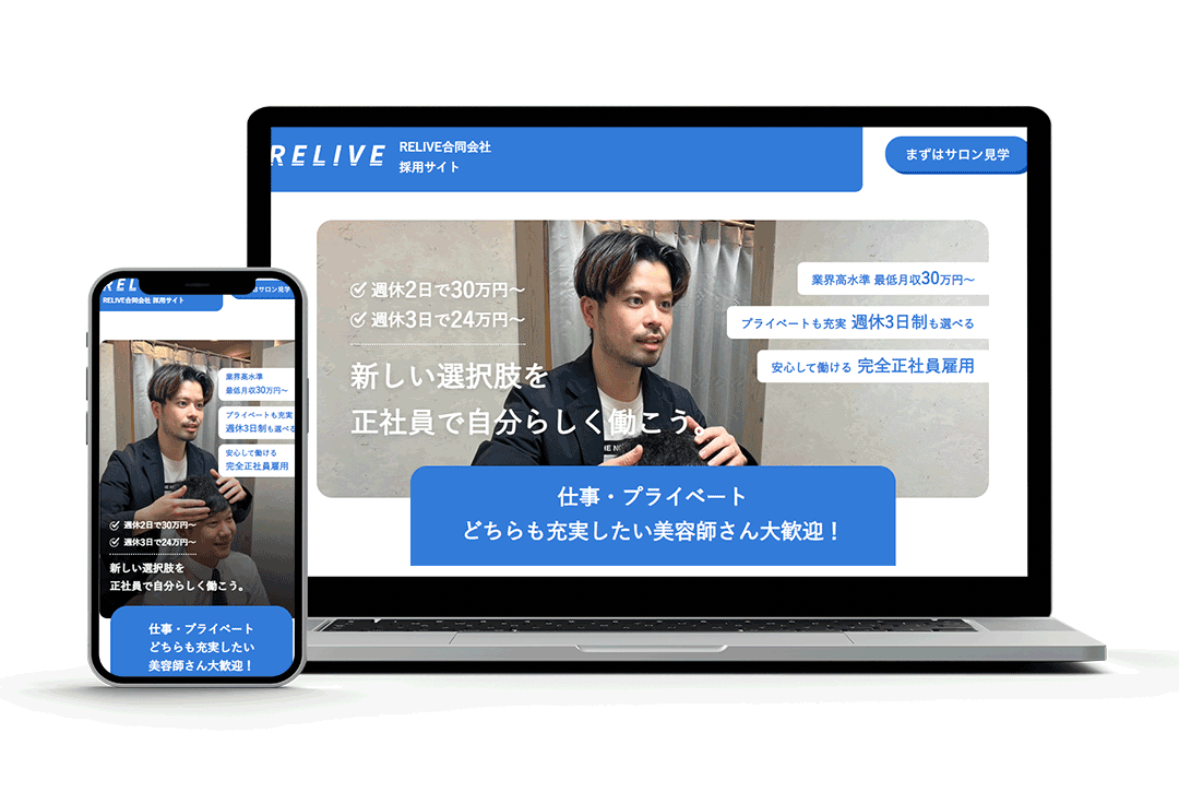 CATEGORY 採用サイト RELIVE合同会社採用サイト 2025.12.22 採用サイト koduka LISHポートフォリオサイト ワンストップ美容サロン「ミダシー」採用特設サイト 2025.12.22 採用サイト koduka LISHポートフォリオサイト カイロライン様採用特設サイト 2025.12.22 採用サイト koduka LISHポートフォリオサイト 東京巻き爪補正店求人サイト 2025.12.22 採用サイト koduka LISHポートフォリオサイト ホワイトニングカフェ様採用特設サイト 2025.12.22 採用サイト koduka LISHポートフォリオサイト