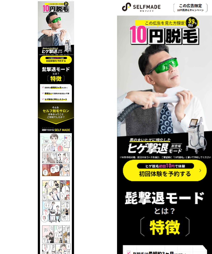 セルフ脱毛サロン「SELFMADE」様のヒゲ脱毛広告宣伝用LP制作を担当いたしました。