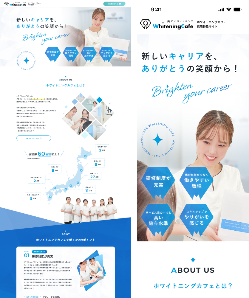 ホワイトニングカフェ様の採用特設サイト制作を担当いたしました。